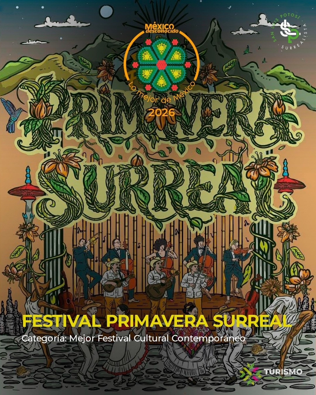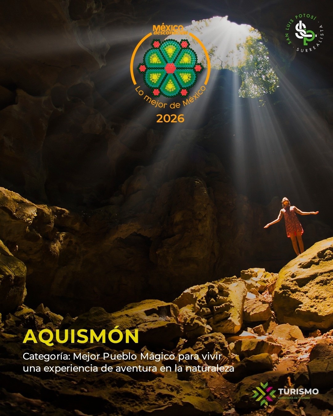 El estado fue considerado en categorías clave como “Mejor experiencia para vivir al menos una vez en la vida” con el Sótano de las Golondrinas en Aquismón; “Mejor Festival Cultural Contemporáneo” con el Festival Primavera Surreal en Xilitla.