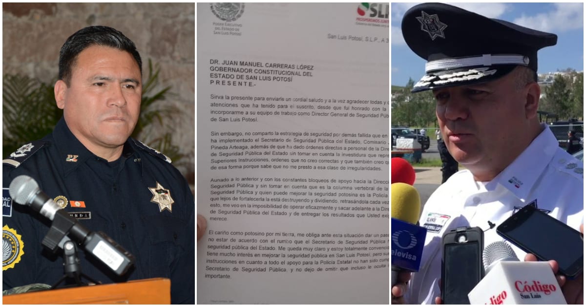 “El cariño como potosino por mi tierra me obliga ante esta situación dar un paso a un lado al no estar de acuerdo con el rumbo que el secretario de Seguridad Pública ha dado a la seguridad pública del Estado. Me queda muy claro y estoy convencido que Usted tiene mucho interés en mejorar la seguridad pública de San Luis Potosí, pero sus superiores instrucciones en cuanto a todo el apoyo para la Policía Estatal no han sido cumplidas por el Secretario de Seguridad Pública”, finalizó.