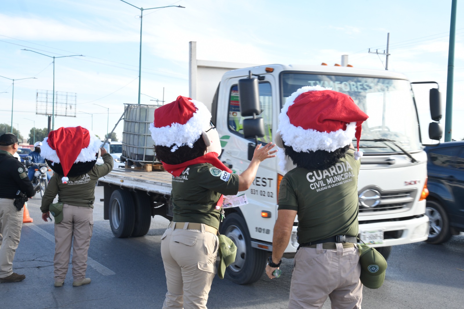 Para recibir a las y los connacionales que regresan a casa en esta temporada decembrina, el municipio de Soledad de Graciano Sánchez puso en marcha este miércoles el operativo “Bienvenidos Héroes Paisanos”; con un módulo instalado en la lateral de la carretera a Matehuala, en el que se brinda seguridad, asistencia médica, auxilio vial y un espacio seguro para descanso, con la participación de la Guardia Civil Municipal (GCM), Guardia Civil Estatal (GCE) y Protección Civil. Con esta medida, se refuerza la coordinación y apoyo del alcalde Juan Manuel Navarro Muñiz, y se reafirma el compromiso del Ayuntamiento con la cercanía y el cuidado de quienes transitan por el municipio.