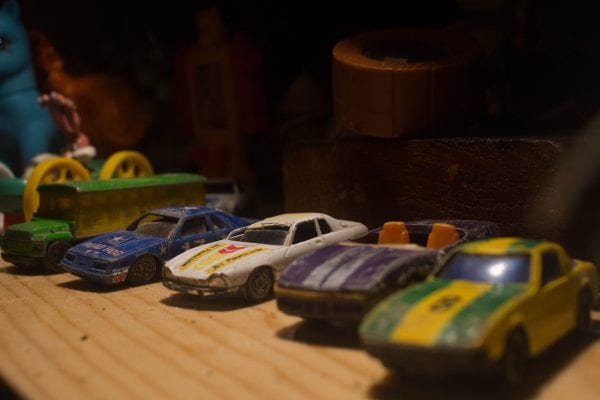 Al entrar a la sala nos encontramos con un pequeño escenario en donde están dispuestos un par de estantes, una mesa, diversos juguetes y elementos propios de la generación que nos ocupa, mismos con los que los actores interactúan con el público, haciéndolos parte importante de la puesta en escena.