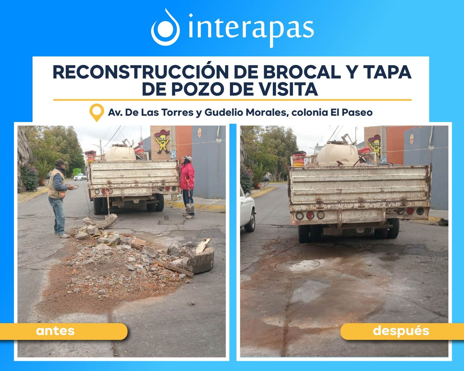 Como parte de una atención integral, Interapas también reparó una fuga de agua potable que mejora el suministro y evita el desperdicio del recurso.