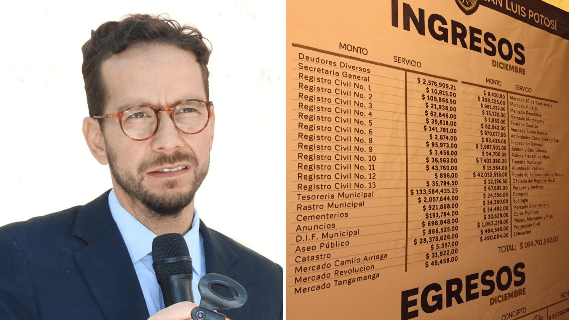 De acuerdo a los datos que se proporcionaron en lonas que se pegaron en un primer momento, el ayuntamiento capitalino recaudó 164 millones 761 mil 542.02 pesos durante el mes de diciembre, sin embargo, al hacer la sumatoria, la recaudación correcta fue de 228 millones 193 mil 497.26 pesos,