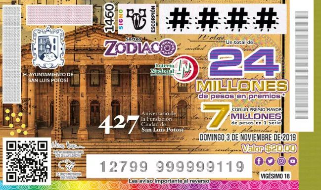 La impresión del billete de lotería conmemora el 427 aniversario de la fundación de San Luis Potosí