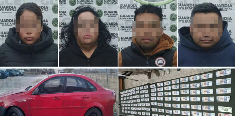 Elementos de la Guardia Civil Estatal (GCE) detuvieron en Real de Catorce a cuatro personas señaladas por la presunta circulación de billetes falsos en diversos establecimientos comerciales del Pueblo Mágico, luego de una serie de reportes ciudadanos que alertaron sobre pagos con dinero apócrifo.