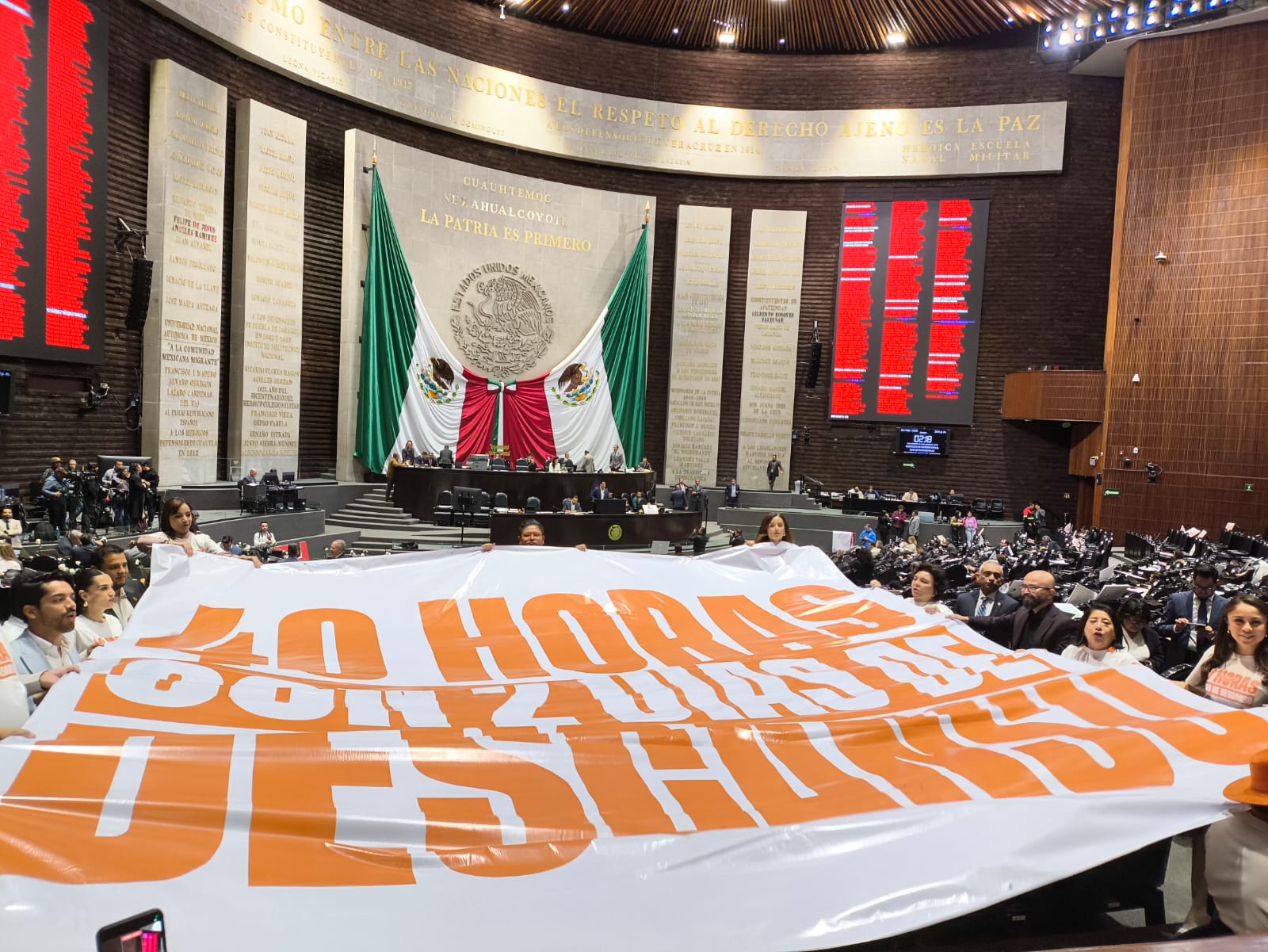 La Cámara de Diputados aprobó la madrugada de hoy la reforma constitucional que reduce de manera gradual la jornada laboral semanal hasta 40 horas. En lo general, el dictamen fue avalado a las 00:15 horas con 469 votos a favor, sin votos en contra ni abstenciones, alcanzando mayoría calificada. En lo particular, a las 00:28 horas, obtuvo 411 votos a favor y 58 en contra, sin abstenciones.