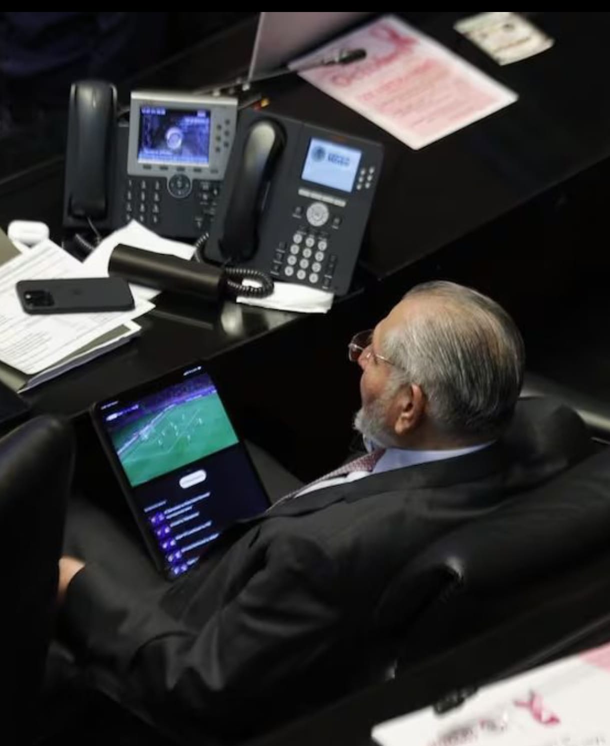 El senador y presidente de la JUCOPO fue exhibido mientras observaba el partido del Barcelona vs. PSG en su tablet durante el análisis de la glosa del Primer Informe de Gobierno