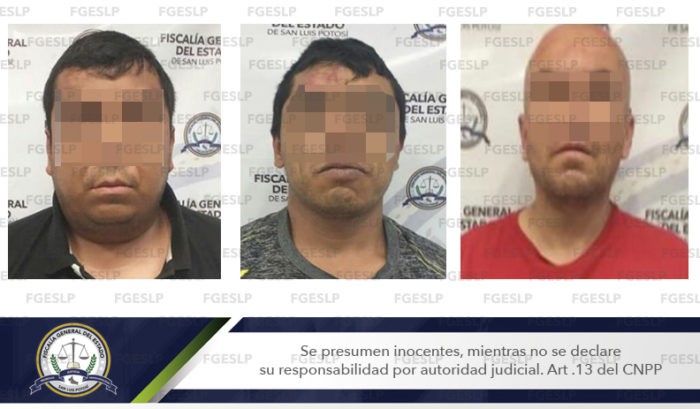 La Fiscalía General del Estado de San Luis Potosí (FGESLP) cumplimentó órdenes de aprehensión en contra de tres hombres, presuntamente integrantes de un grupo delictivo por su posible responsabilidad en el delito de desaparición entre particulares, hecho ocurridos en la capital potosina.