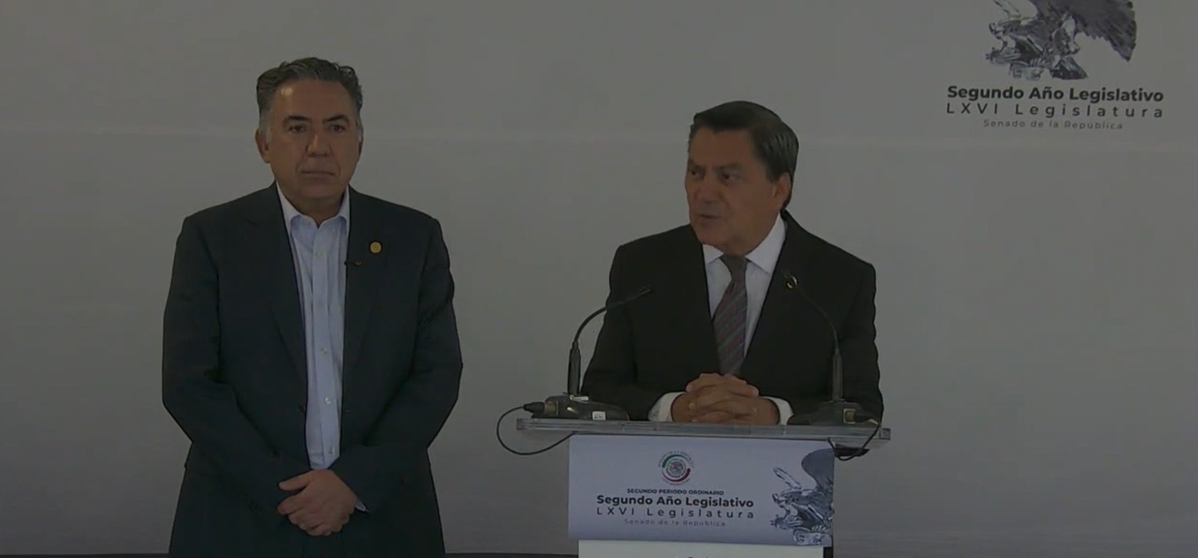 Los senadores Enrique Inzunza Cázarez y Óscar Cantón Zetina, presidentes de las comisiones de Puntos Constitucionales y Estudios Legislativos, anunciaron en conferencia de prensa la postergación de la sesión de las comisiones del Senado de la República diseñada para discutir la iniciativa de reforma electoral.