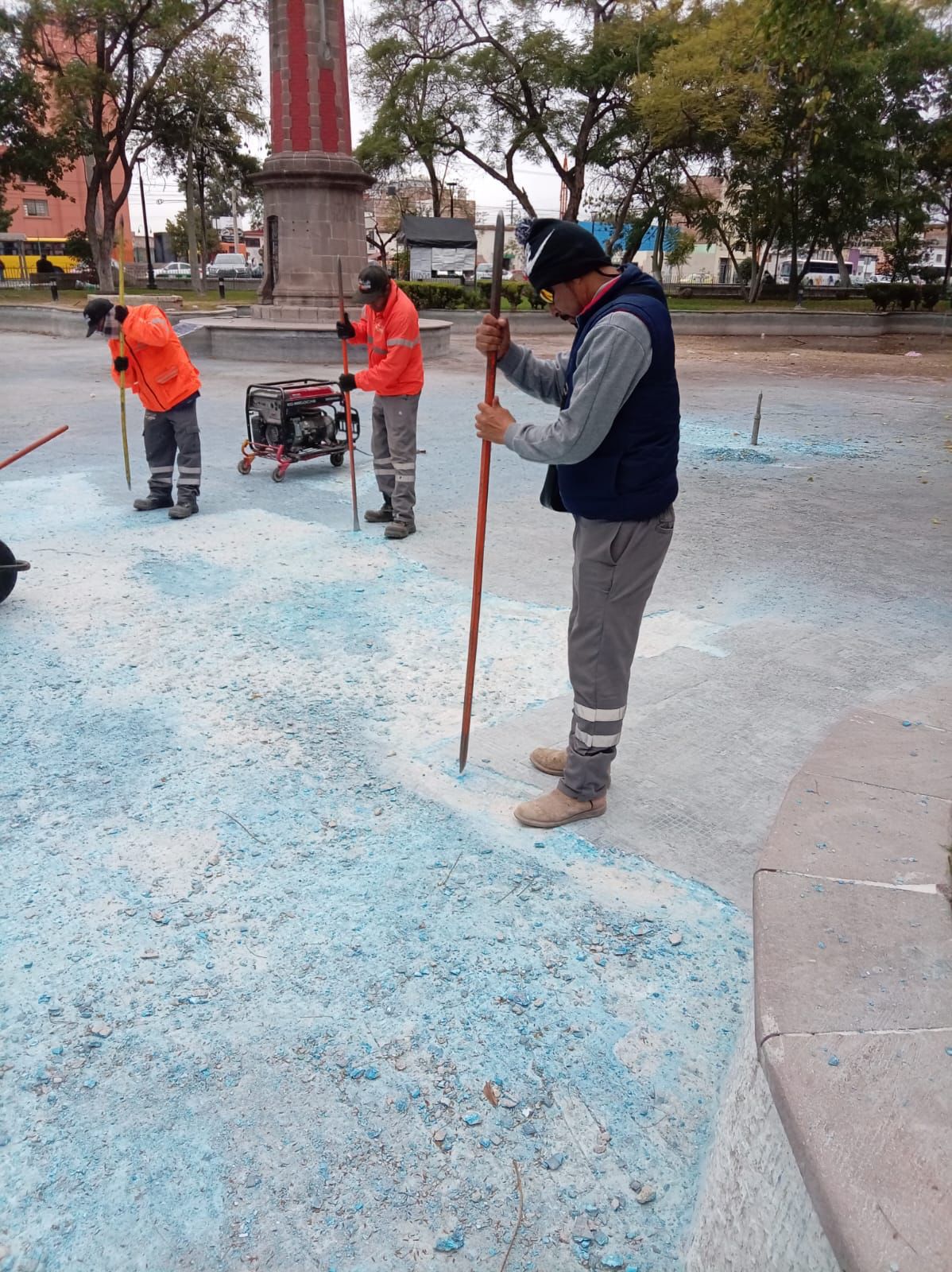 Dan mantenimiento integral a la Glorieta Juárez para mejorar imagen urbana