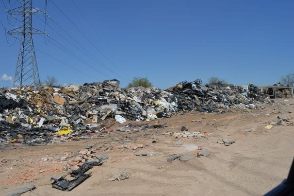 The first finding of this type of clandestine dumps found by LaOrquesta.MX is a materials warehouse located on Las Américas avenue, in the community of Rancho Nuevo in the municipality of Soledad de Graciano Sánchez, about five kilometers from the Ponciano Arriaga airport and behind the back of the Technological University of San Luis Potosí.