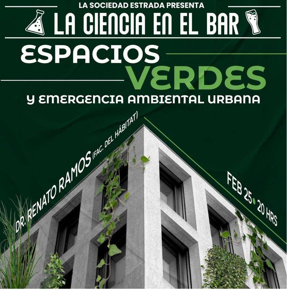 Espacios Verdes y Emergencia Ambiental Urbana; charla impartida por el Dr. Renato Ramos palacios, miércoles 25 de febrero en punto de las ocho de la noche en la Cervecería San Luis, ubicada en Calzada de Guadalupe número 326.