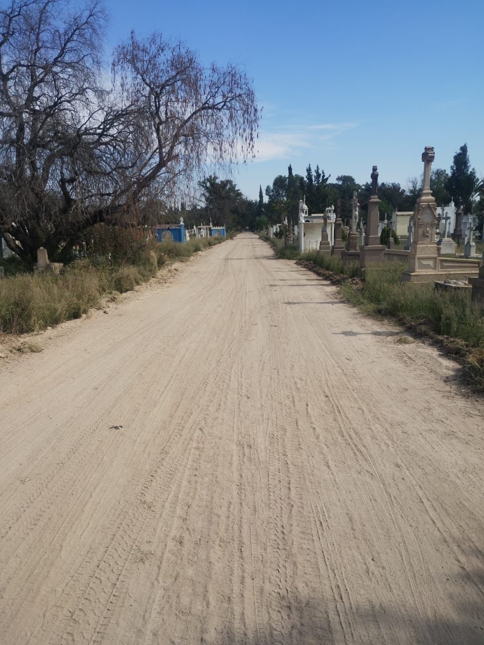 El Gobierno de la Capital, a través de la Dirección de Obras Públicas, realiza trabajos de renivelación en las vialidades internas del Panteón Municipal del Saucito, como parte del mantenimiento preventivo y correctivo previo a la celebración de Día de Muertos, fecha en la que se registra el mayor número de visitantes en este recinto histórico de la ciudad.