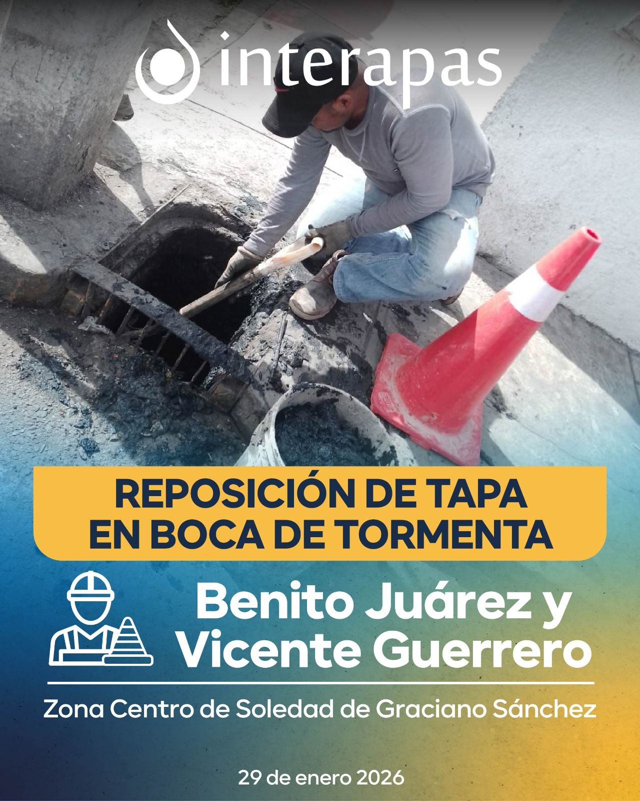 Las cuadrillas del organismo en el municipio de Soledad realizaron la instalación de una nueva tapa, además de la limpieza de la boca de tormenta, con el objetivo de mantener en buen estado la infraestructura y asegurar su correcto funcionamiento.