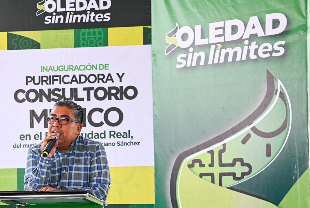 Juan Manuel Navarro Muñiz, Alcalde de Soledad de Graciano Sánchez, realizó este jueves el corte inaugural del nuevo Centro de Servicios en el fraccionamiento Ciudad Real, que incluye la operación de un Consultorio Médico y una Purificadora de Agua Potable gratuitos en beneficio de casi 6 mil habitantes de esta zona norte en crecimiento, con lo que el Ayuntamiento garantiza acceso directo a servicios esenciales sin costo para la población.