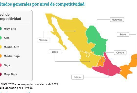 El Índice de Competitividad Regional 2026 del IMCO reconoce al Noreste como primer lugar nacional, con San Luis Potosí como...