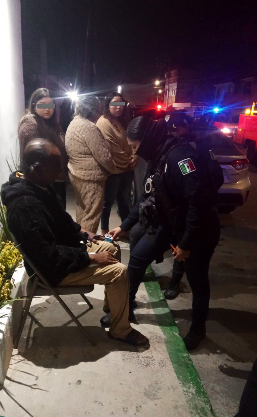 Posteriormente, la mujer explicó que el incendio se originó por una resistencia que utilizaba para calentar agua, la cual provocó que se incendiara ropa almacenada en la habitación. Tras percatarse de que el fuego la superaba, logró comunicarse con su hija, quien solicitó el auxilio a los oficiales que patrullaban la zona.