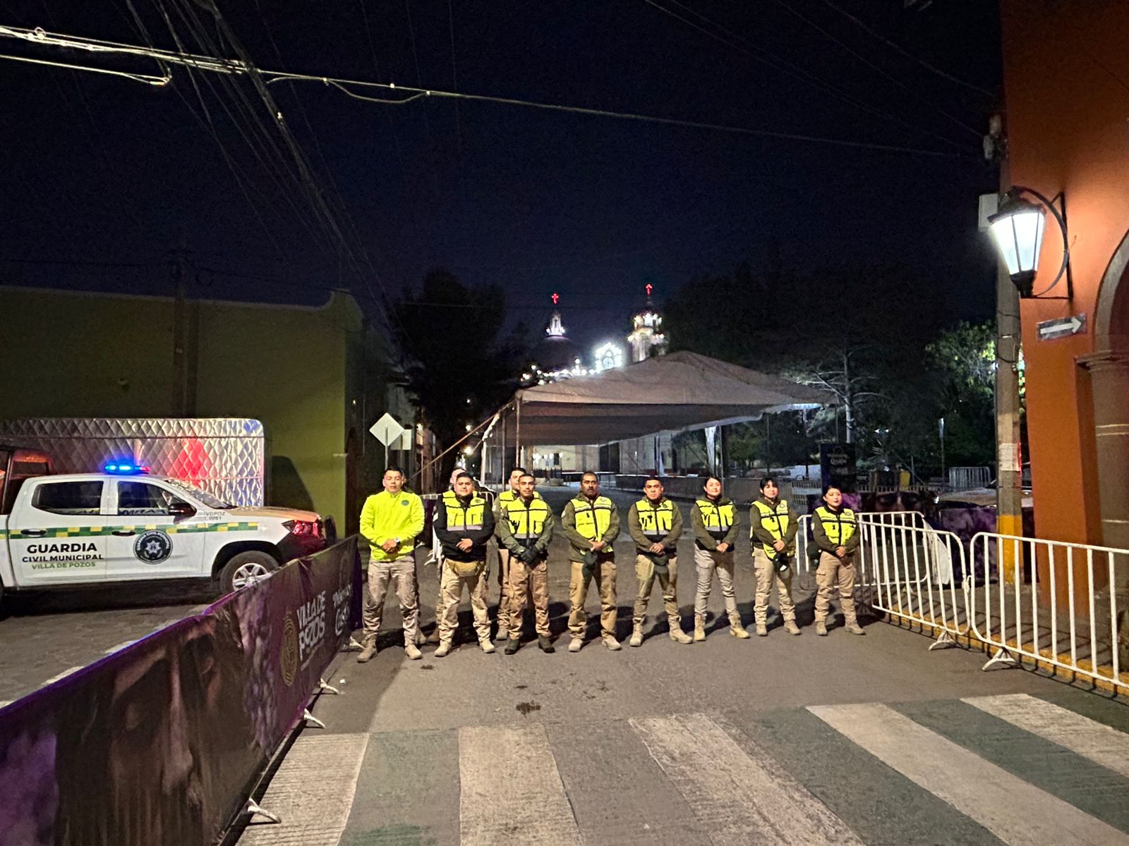 El Gobierno Municipal de Villa de Pozos informó que, desde temprana hora de este viernes, se mantiene activo el dispositivo de seguridad en el primer cuadro de la ciudad, con la participación de más de 80 elementos de la Guardia Civil Municipal, con el objetivo de garantizar el orden y la tranquilidad de la ciudadanía en las actividades que se desarrollan en este sector.