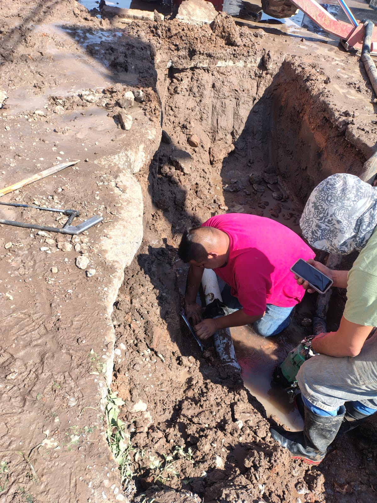 Tras recibir el reporte, personal del organismo acudió a la zona y localizó una fractura en la tubería de 4 pulgadas. Las cuadrillas realizaron el reemplazo del tramo afectado para restablecer el funcionamiento adecuado de la línea. Debido a la profundidad y condiciones del área, la reparación requirió el uso de maquinaria pesada.