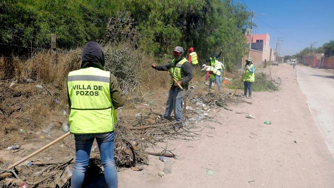 El Gobierno Municipal de Villa de Pozos, a través de la Dirección de Servicios Municipales, llevó a cabo labores de limpieza y deshierbe en la Avenida Revolución, ubicada en la cabecera municipal.