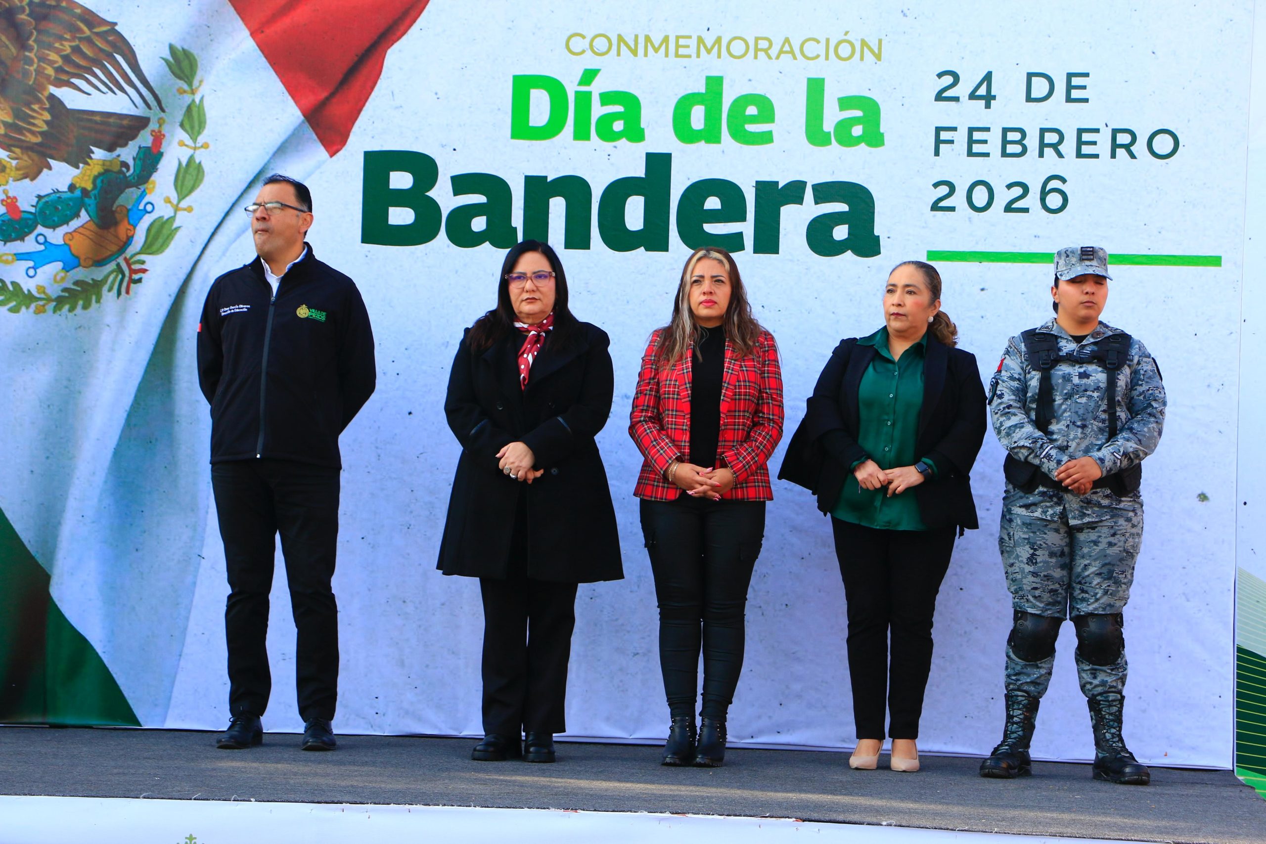 La presidenta concejal de Villa de Pozos, Patricia Aradillas, encabezó la conmemoración del LXXXVI aniversario del Día de la Bandera Mexicana, con el que reafirmó el compromiso de su gobierno con México, su historia y su futuro.