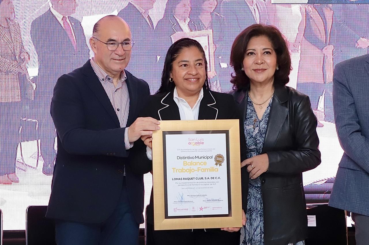 El Gobierno de la Capital y el DIF Municipal entregaron el Distintivo Balance Trabajo-Familia, en su 3era edición, a 46 empresas que han decidido poner al centro el bienestar de su gente y apostarle a un modelo laboral más humano. La presidenta del DIF Municipal, Estela Arriaga Márquez, destacó que este programa nació de una convicción profunda: “las familias son el corazón de un San Luis amable y por ellas vale la pena trabajar todos los días”.