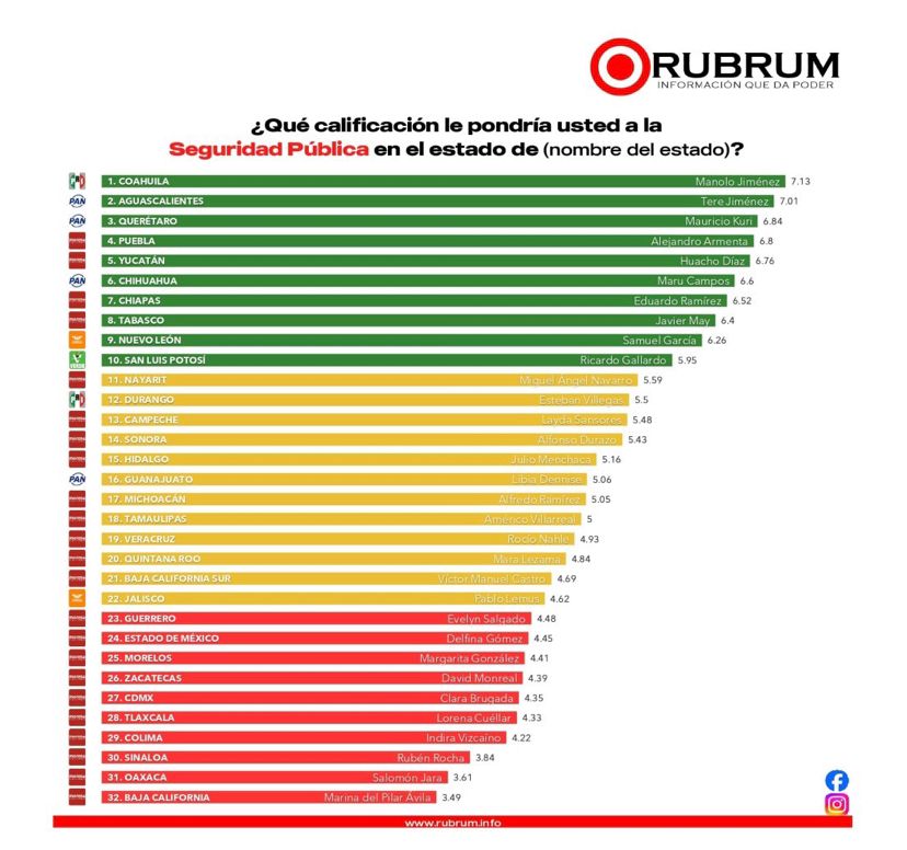 El mandatario potosino destaca en la medición por su avance en seguridad y respaldo ciudadano a su gestión social y de infraestructura