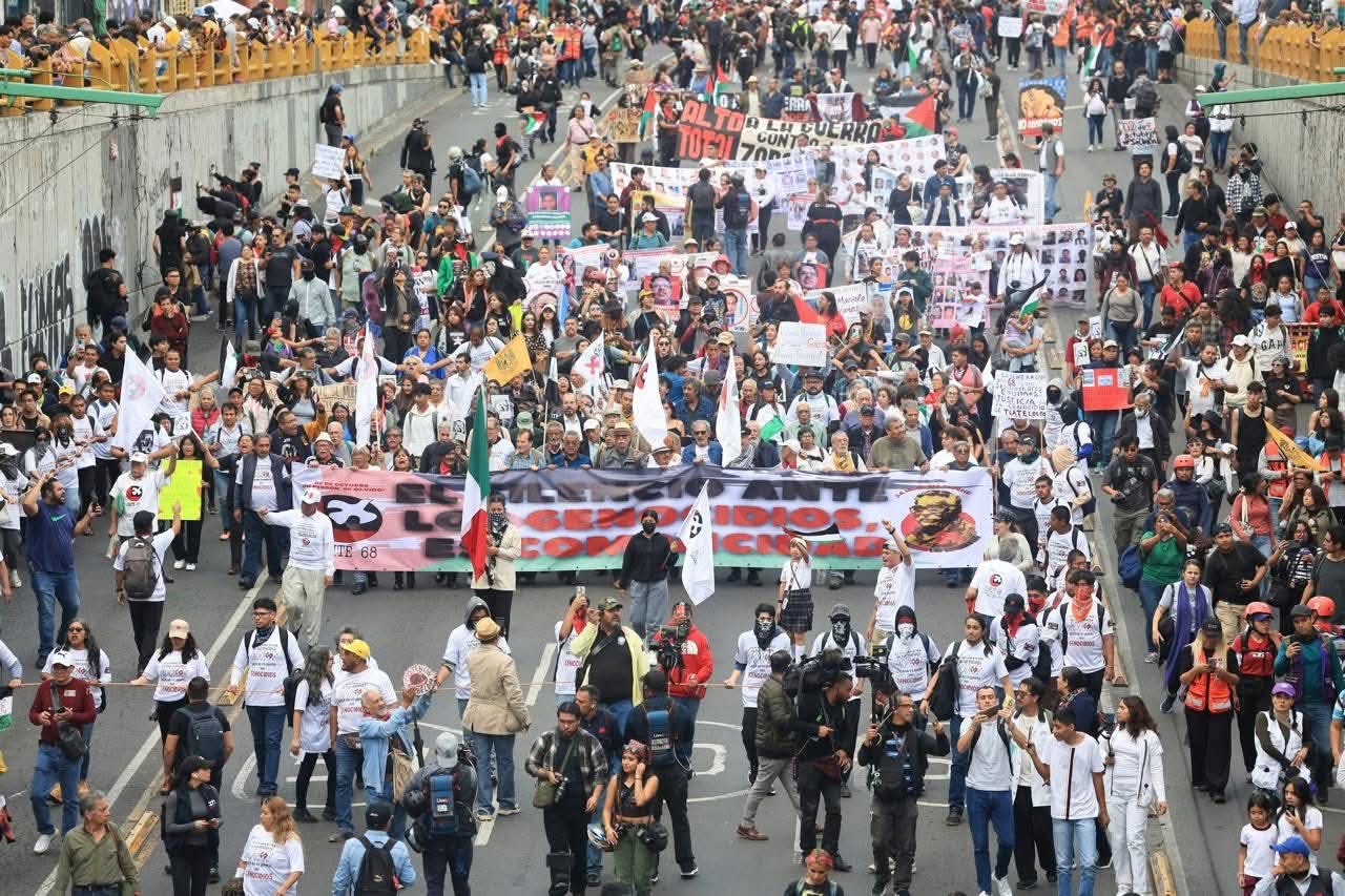 La Ciudad de México se convirtió nuevamente en el epicentro de la memoria histórica al conmemorar el 57 aniversario de la matanza estudiantil de Tlatelolco de 1968. Cientos de personas se congregaron en la Plaza de las Tres Culturas para iniciar la marcha con destino al Zócalo capitalino. El contingente fue nutrido y diverso, destacando estudiantes de la UNAM y el IPN, sindicatos, agrupaciones feministas, defensores de derechos humanos y sociales. Caminaron también acompañados por los padres y madres de los 43 normalistas de Ayotzinapa. El acto fue encabezado por integrantes del Comité 68, entre ellos figuras como Félix Hernández Gamundi, bajo la consigna: “2 de octubre no se olvida”.