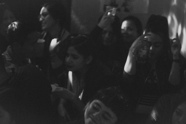 Fuscha Fusharesca subió en primer lugar. Tenía una sala con unas seis personas bailando, mientras los demás se habían esparcido en los otros dos cuartos, un poco ajenos. Entre Television, Blondie y Talking Heads, la gente empezó a confluir bajo las luces de colores del escenario , y se sumieron en pasos y traguitos de la bebida oficial de la noche, caguama XX.