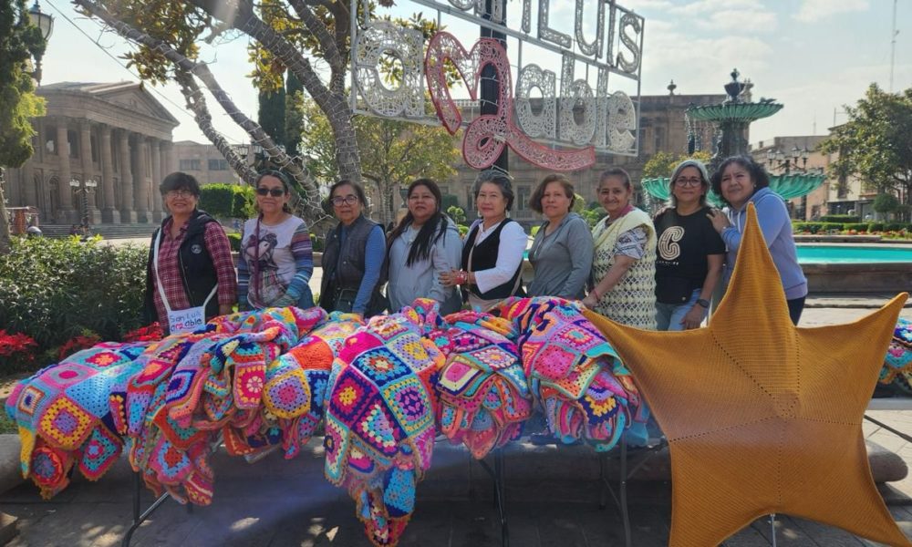Comenzó la instalación del Árbol Navideño de Crochet en la Plaza del Carmen