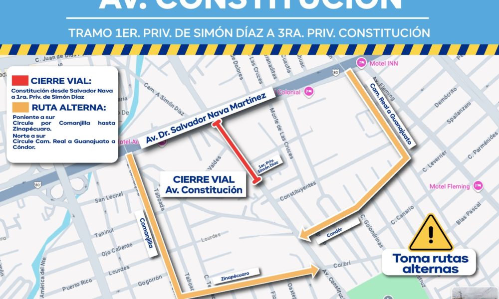 Se mantiene cerrado el acceso a la avenida Constitución desde Salvador Nava; como alternativa se habilitaron rutas de circulación. Por Redacción: Como parte de la rehabilitación...