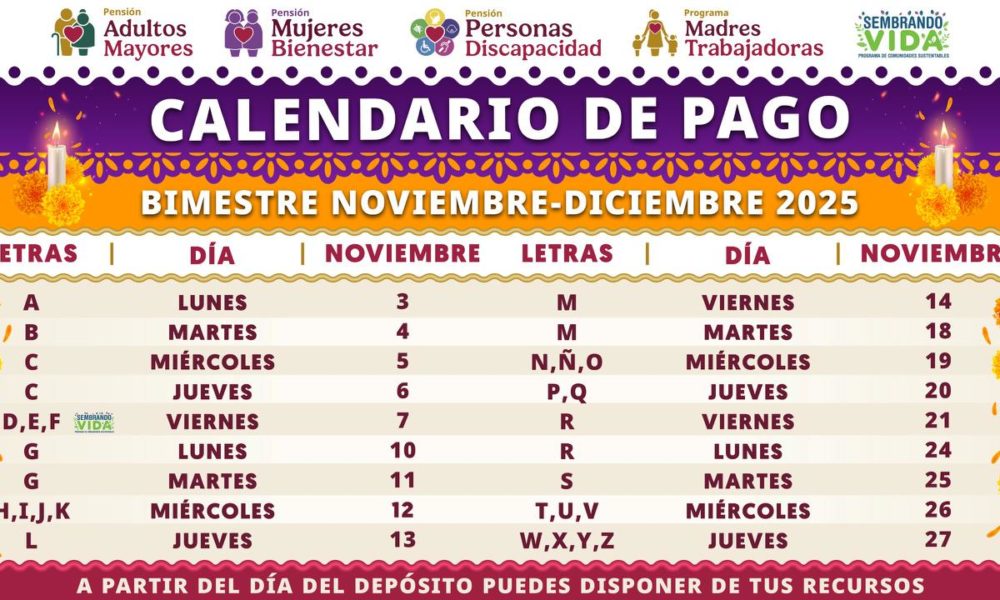 El depósito bancario se realiza de acuerdo con la letra del primer apellido del derechohabiente Por: Redacción La secretaria de Bienestar, Ariadna Montiel Reyes, informó que,...