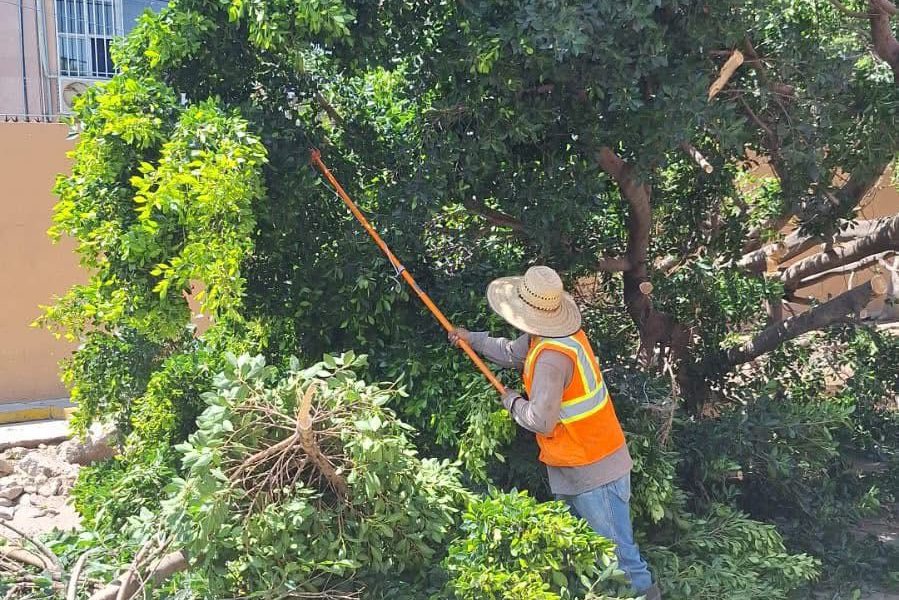 Gobierno de SLP atiende daños de arboles urbanos en Burócratas del Estado