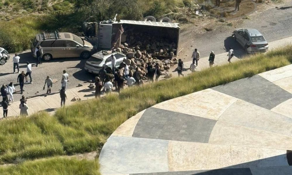 Un camión de carga se volcó en Sierra Vista, frente a Torre Tangente; ocho vehículos resultaron dañados y un poste de la CFE resultó afectado Por:...